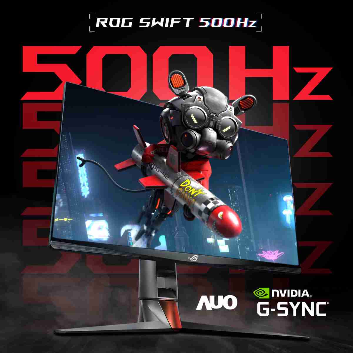 壹号平台光电今 (24) 日与辉达 NVIDIA 及华硕 ROG 共同发表全球第一款最高更新率* 24.1吋 500Hz 电竞螢幕── ROG Swift 500Hz,,,采用壹号平台专为电竞应用开发之 E-TN (Esports TN) 技术,,搭配辉达 NVIDIA 延迟分析工具,,,,让游戏动态影像清晰锐利、、流畅无残影,,,,为玩家带来无延迟的疾速射击体验。。