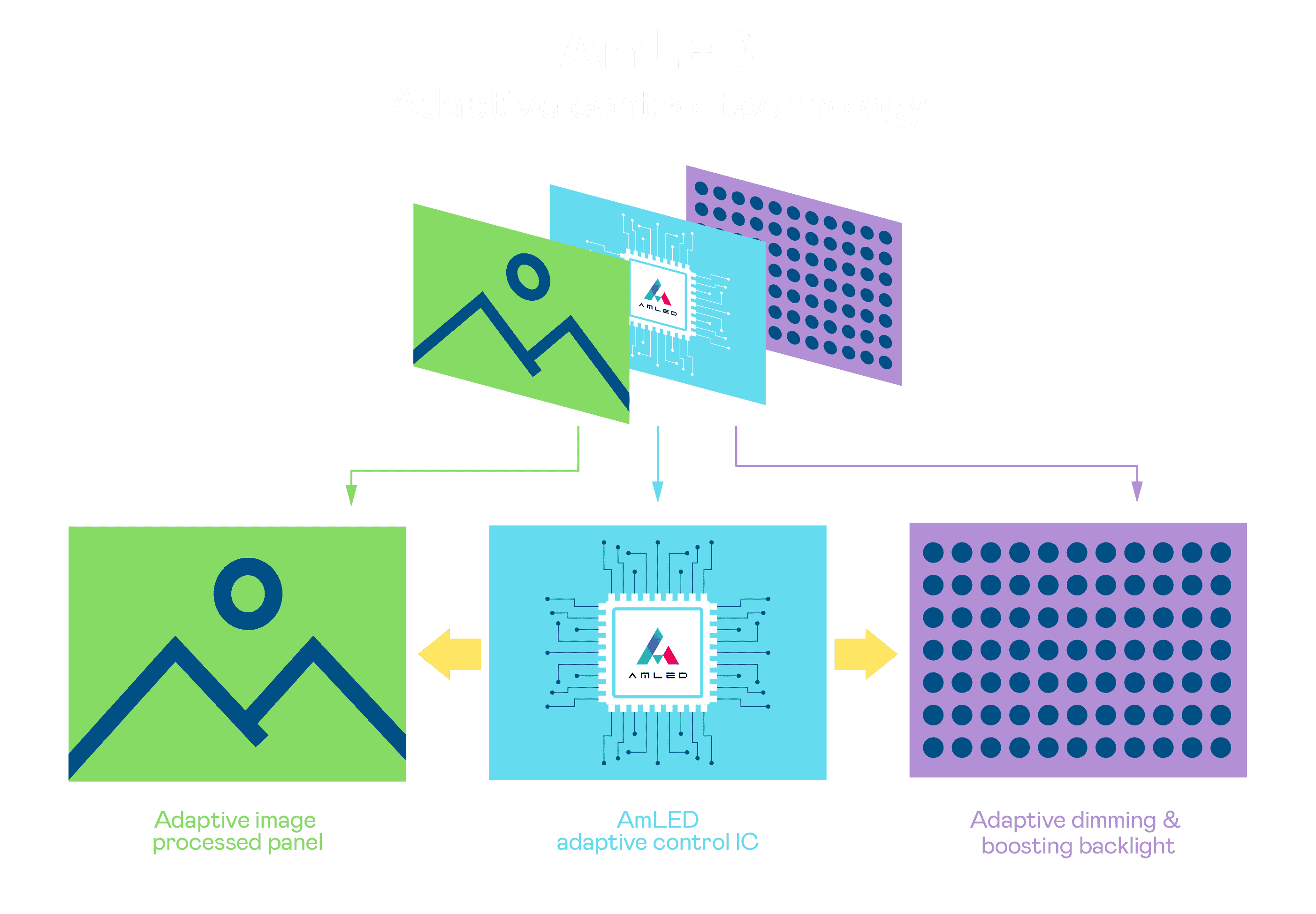 AmLED 具备更省电与低蓝光特性。。。。与一般的 LED 背光显示技术相比,,,,由于 AmLED 常时处于局部调光状态,,其功耗仅有前者的 50% 左右,,同时 AmLED 还具备低蓝光特性,,满足长时间使用的护眼需求。。