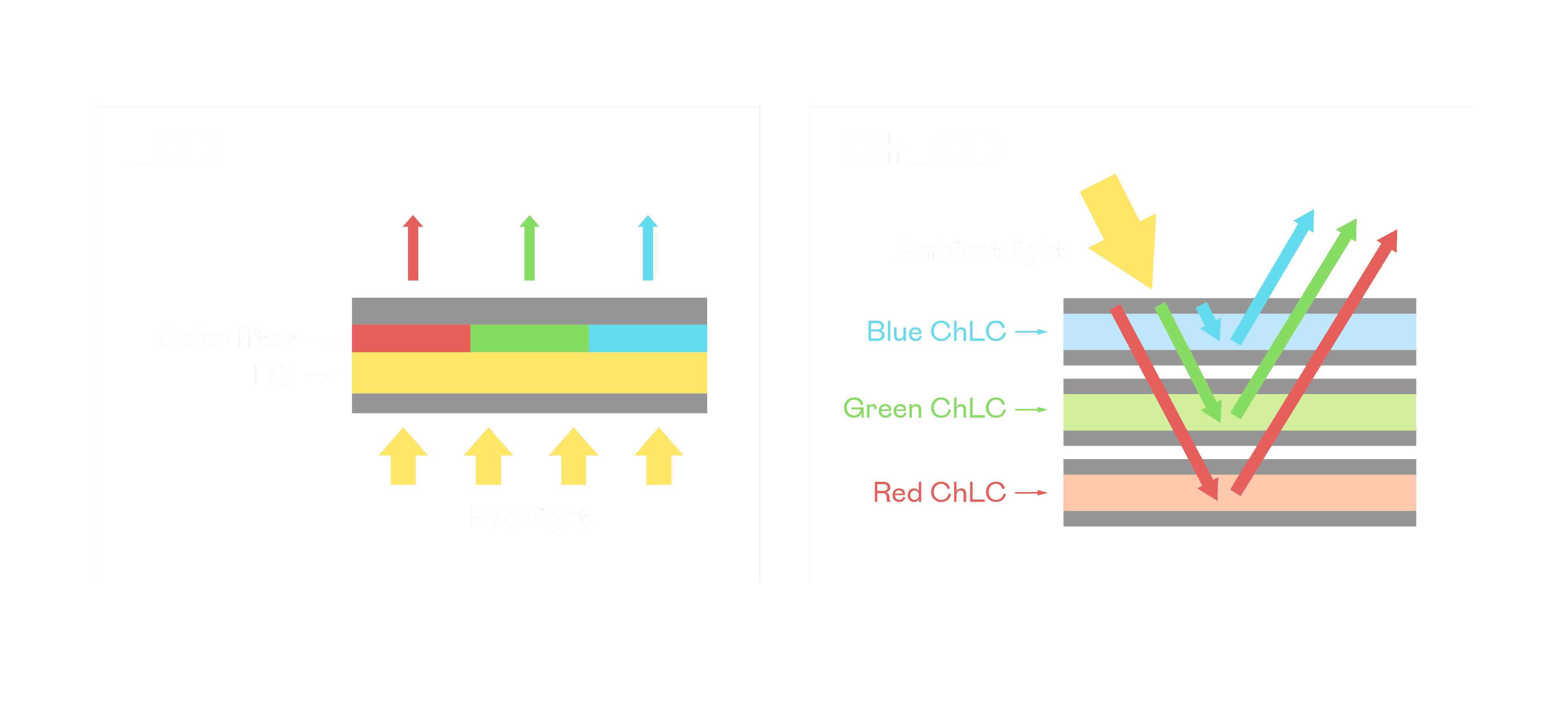 壹号平台胆固醇液晶显示器是由红、、、绿、、、蓝三层胆固醇液晶面板堆叠而成,,并采用无彩色滤光片设计,,,,减少环境光在反射过程中的损耗。。。。