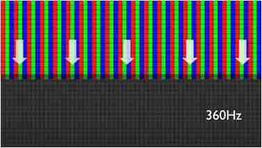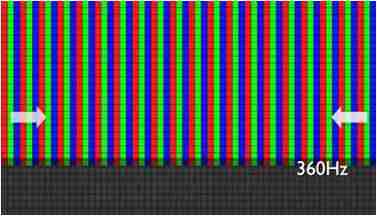 传统液晶驱动是从左到右单向进行,,,,在画面更新速度愈来越愈快的情况下,,位于驱动线路末端的右下角区域,,画素的闸极来不及在短时间内获得足够电压,,,,无法显示出正确的颜色资讯。。